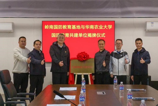 26日下午,支部一行来到位于兴宁市黄槐镇的岭南国防教育基地开展调研交流。广东省旅游控股集团党委委员、副总经理杨爱军,副总经理李福文等领导接待了一行人。双方就新生军训、国防教育、干部培训、基地建设、后勤保障等议题展开深入交流。随后,双方为“华南农业大学与岭南国防教育基地国防教育共建单位”揭牌并实地参观了解基地建设情况。